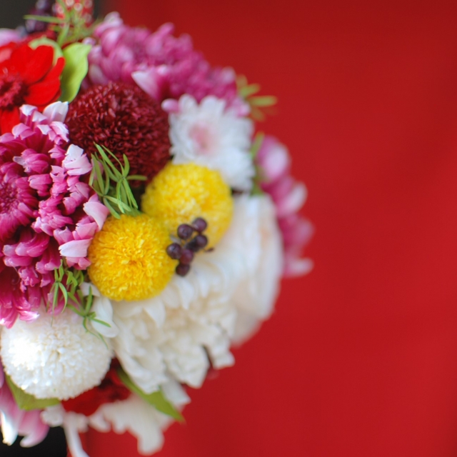 また、白無垢の打掛を羽織らずにドライフラワーブーケを持ったり、掛下やはこせこセットに色を持ってきたりして個性を演出することもできます。