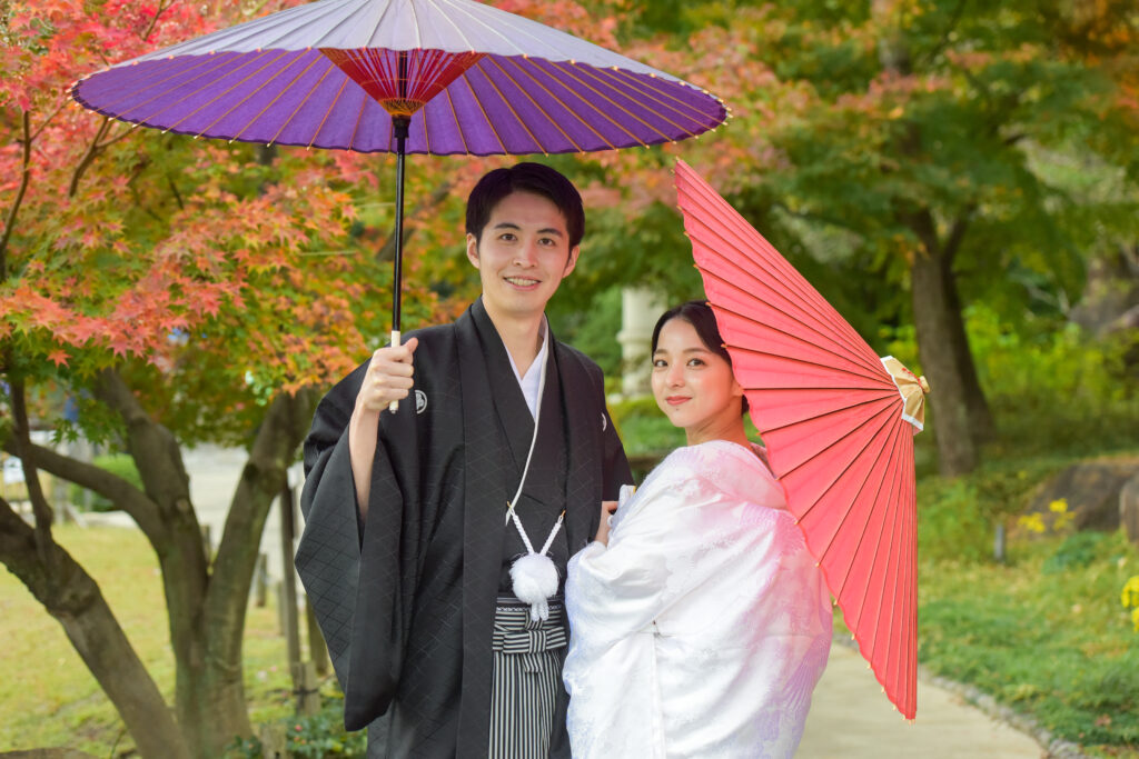 徳川園和装ロケーション紅葉前撮りレポ≪日本庭園でウェディングフォト≫