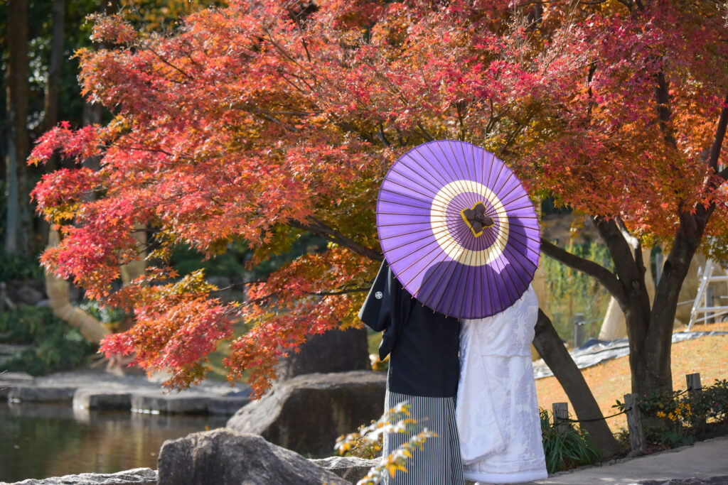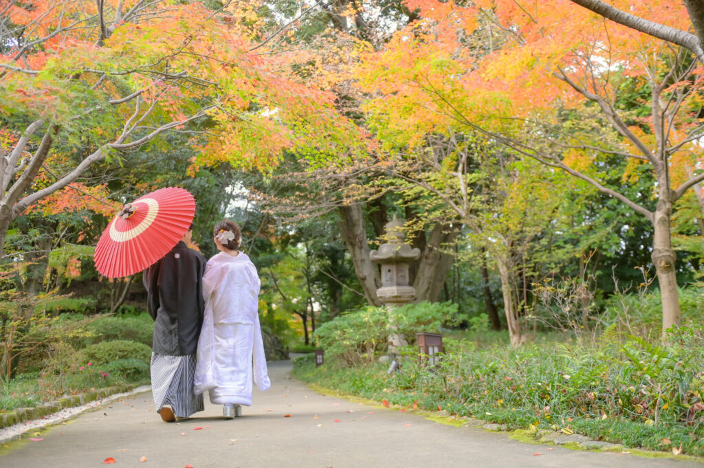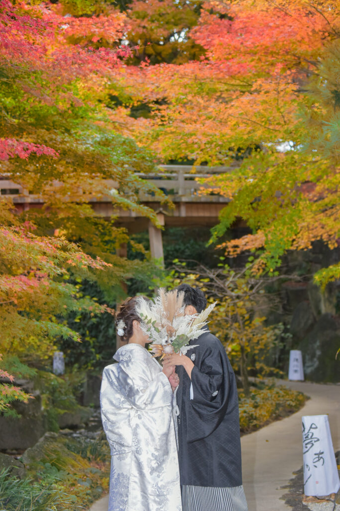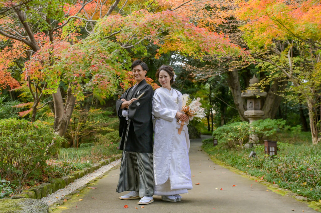 徳川園和装ロケーション紅葉前撮りレポ≪日本庭園でウェディングフォト≫