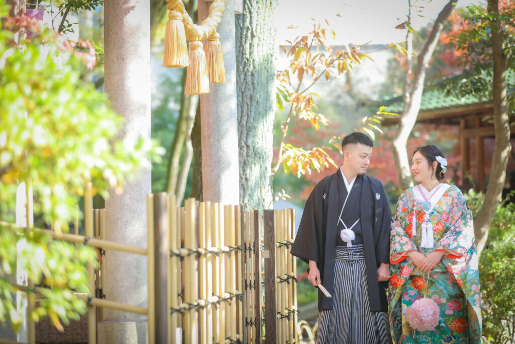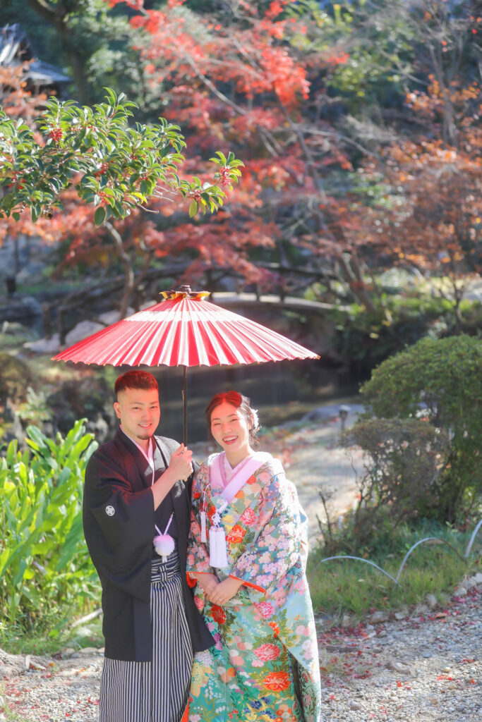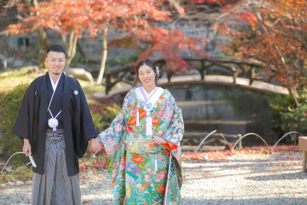 揚輝荘和装ロケーション紅葉前撮りレポ≪日本庭園でウェディングフォト≫