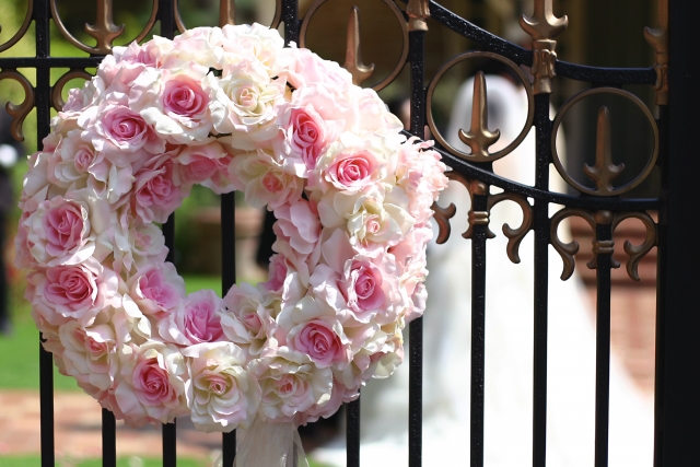 写真は結婚式当日だってもちろん大事。フォトリースという、写真を撮るときに持つ大きな輪っかをご存知ですか?前撮りでふたりで撮った後は、ゲストとだって撮っちゃいましょう!
