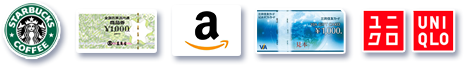 ギフト券はスタバギフトカード、全国百貨店共通商品券、アマゾンギフトカード、JCBギフト券、ユニクロギフト券からお選びいただけます。