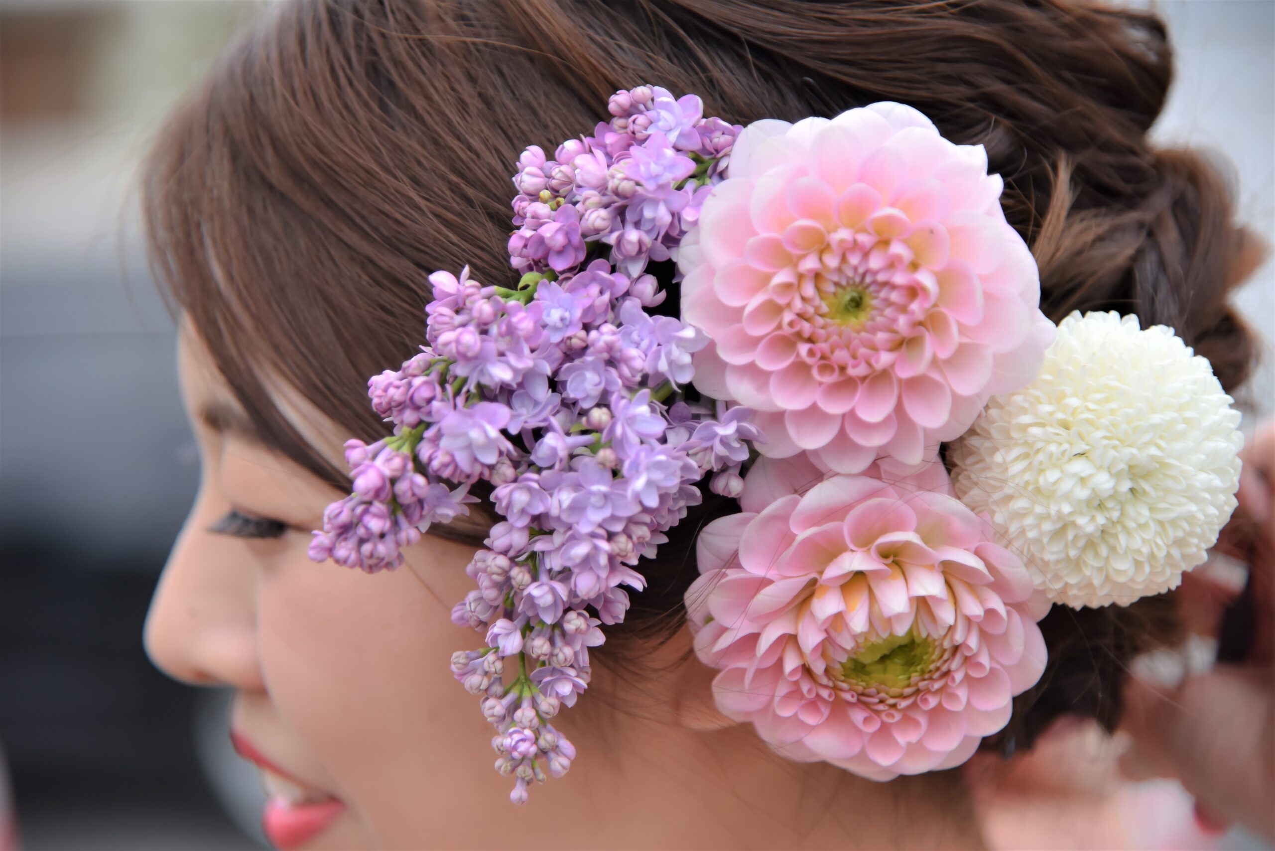 和装前撮り髪飾りは生花を持ちこみ