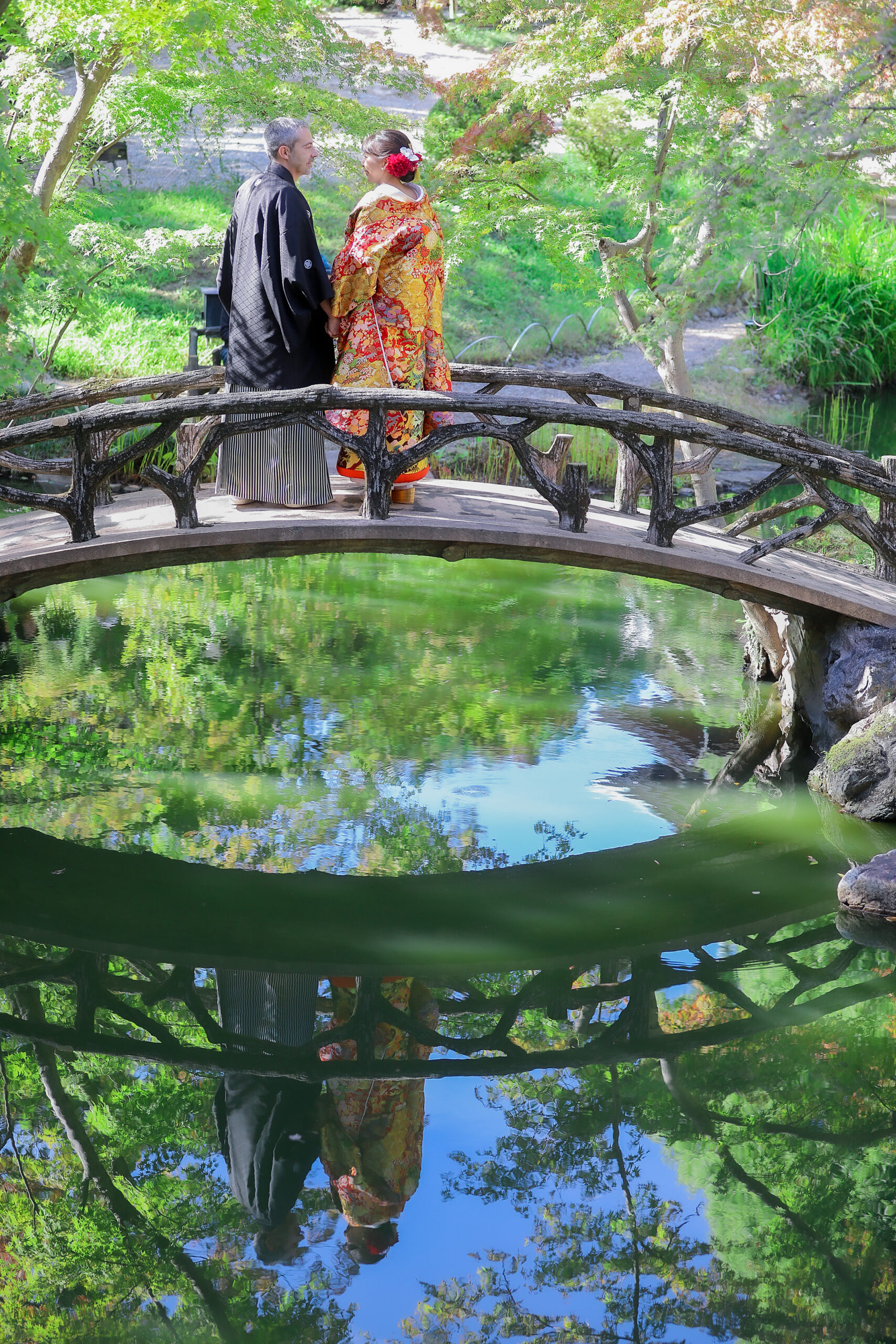揚輝荘で和装ウェディングフォト「橋の上の後ろ姿」