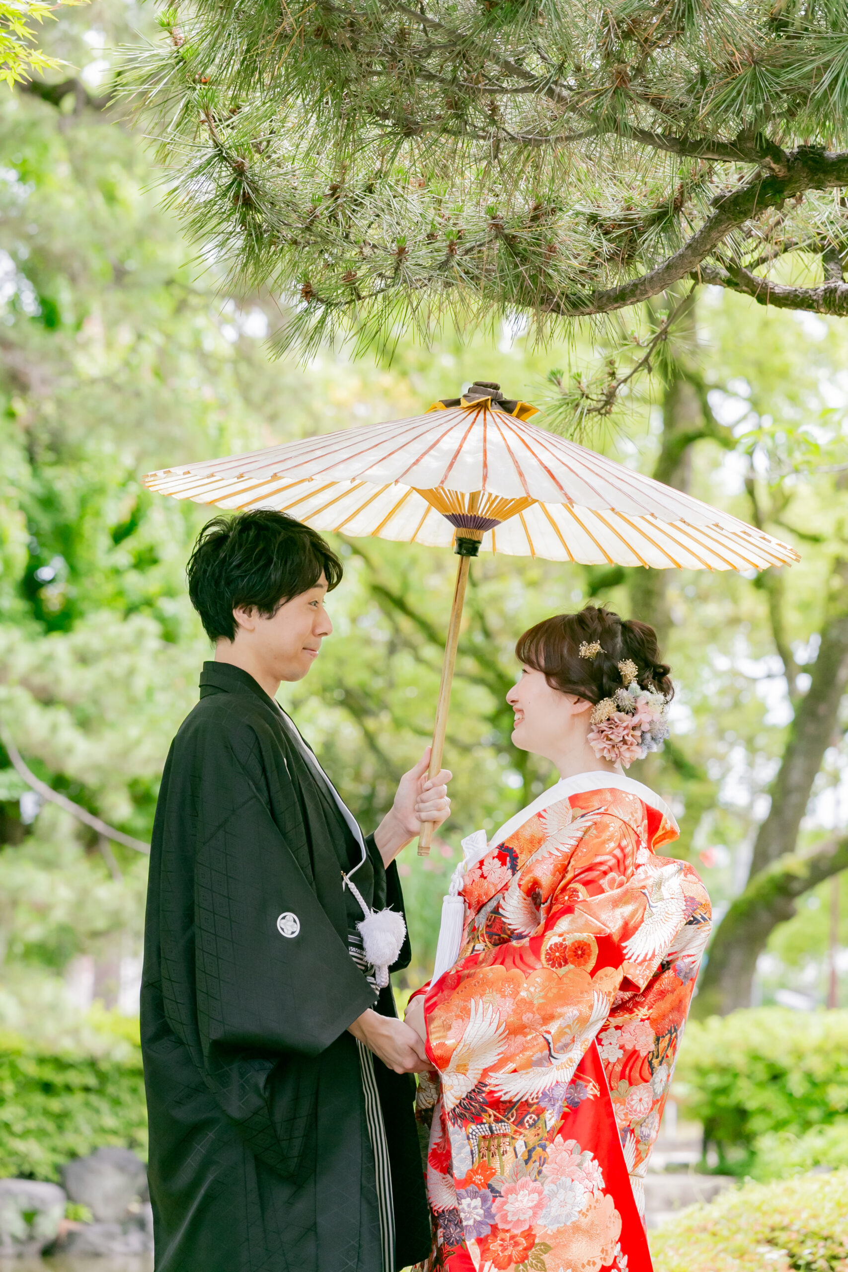 中村公園桐蔭茶席で和装ロケーション 相合傘
