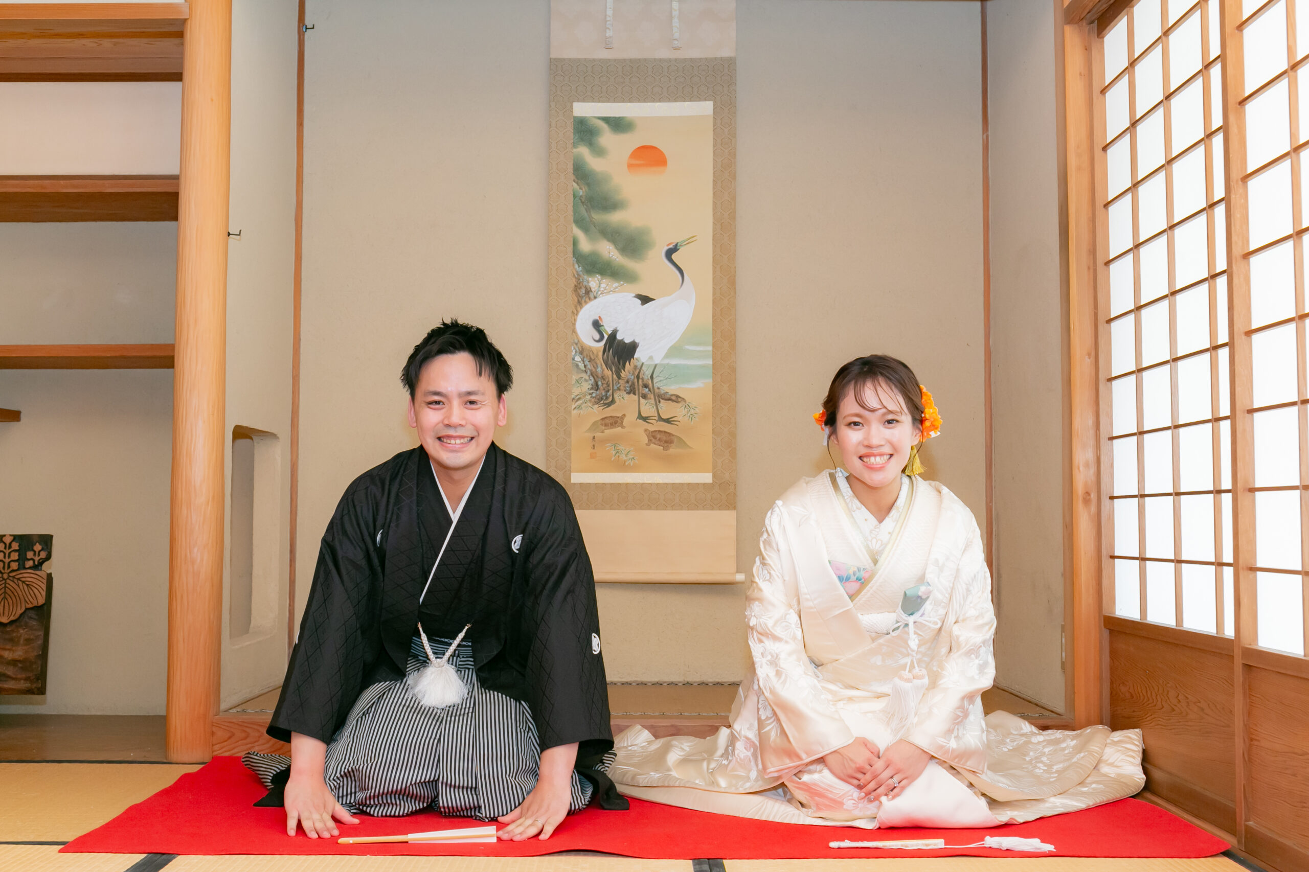 中村公園で白無垢前撮りロケーション 和室で正座あいさつ