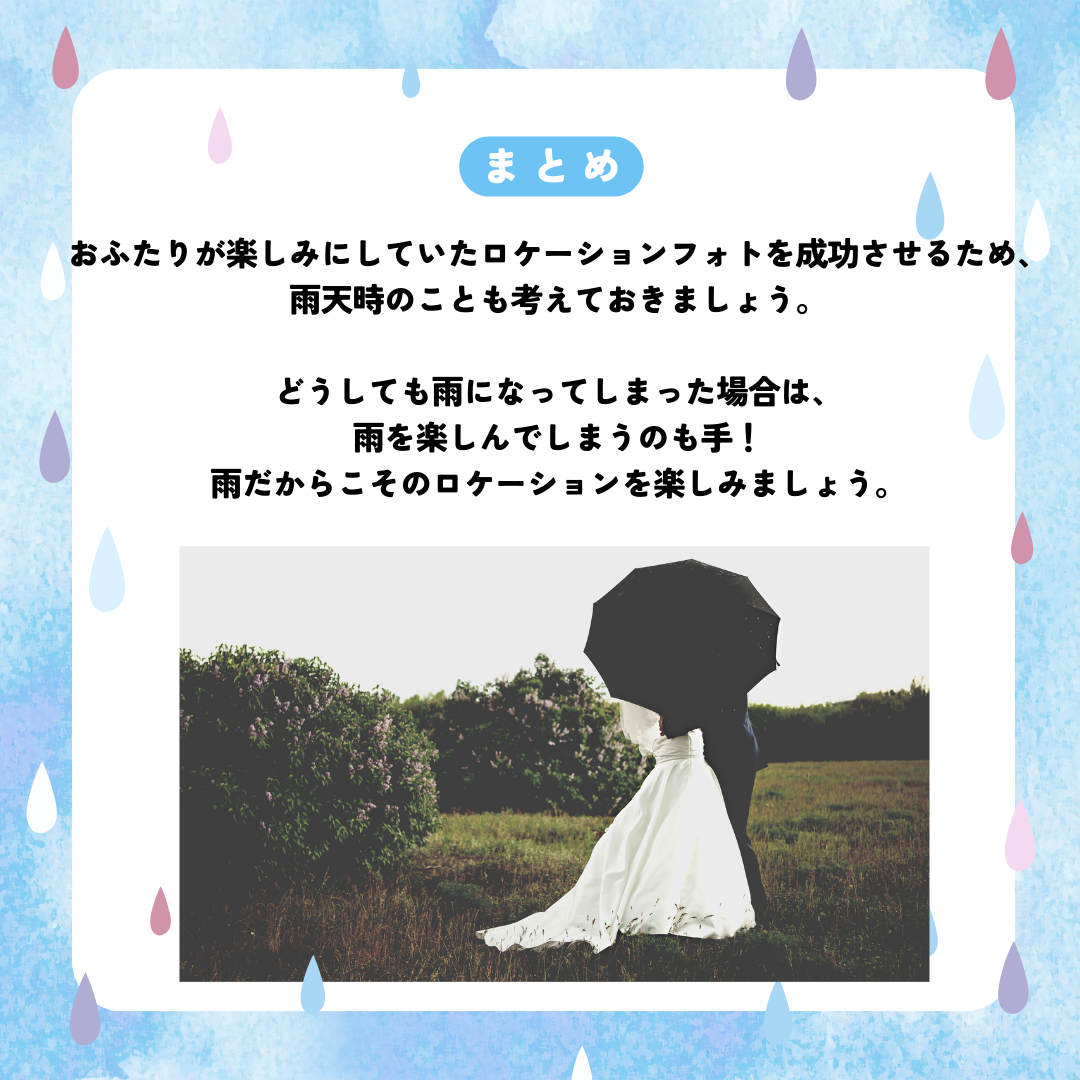 憧れのロケーションフォト!撮影日が雨予報だったら?