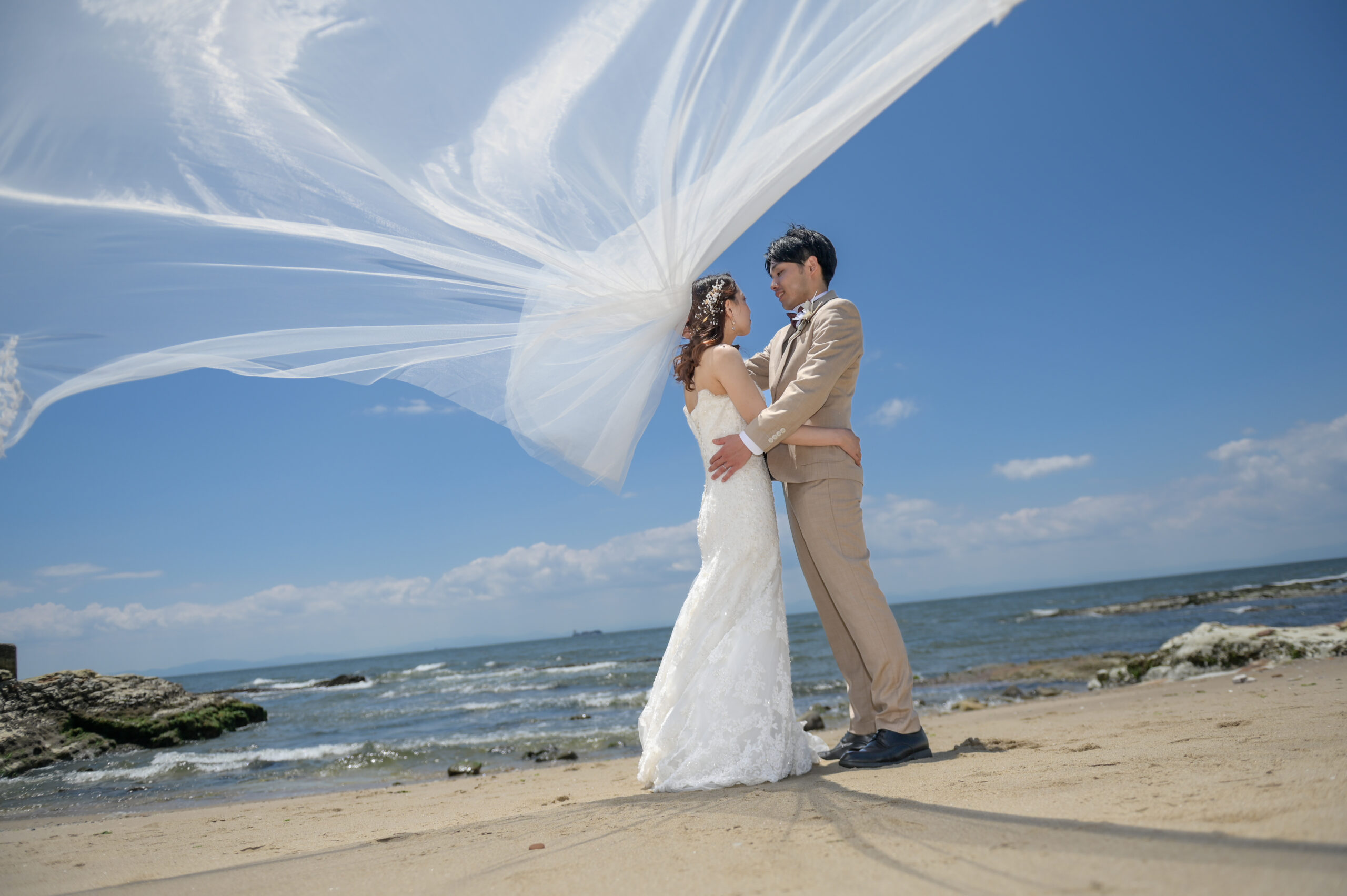 野間灯台洋装ロケーション前撮りレポ《海でウェディングフォト》