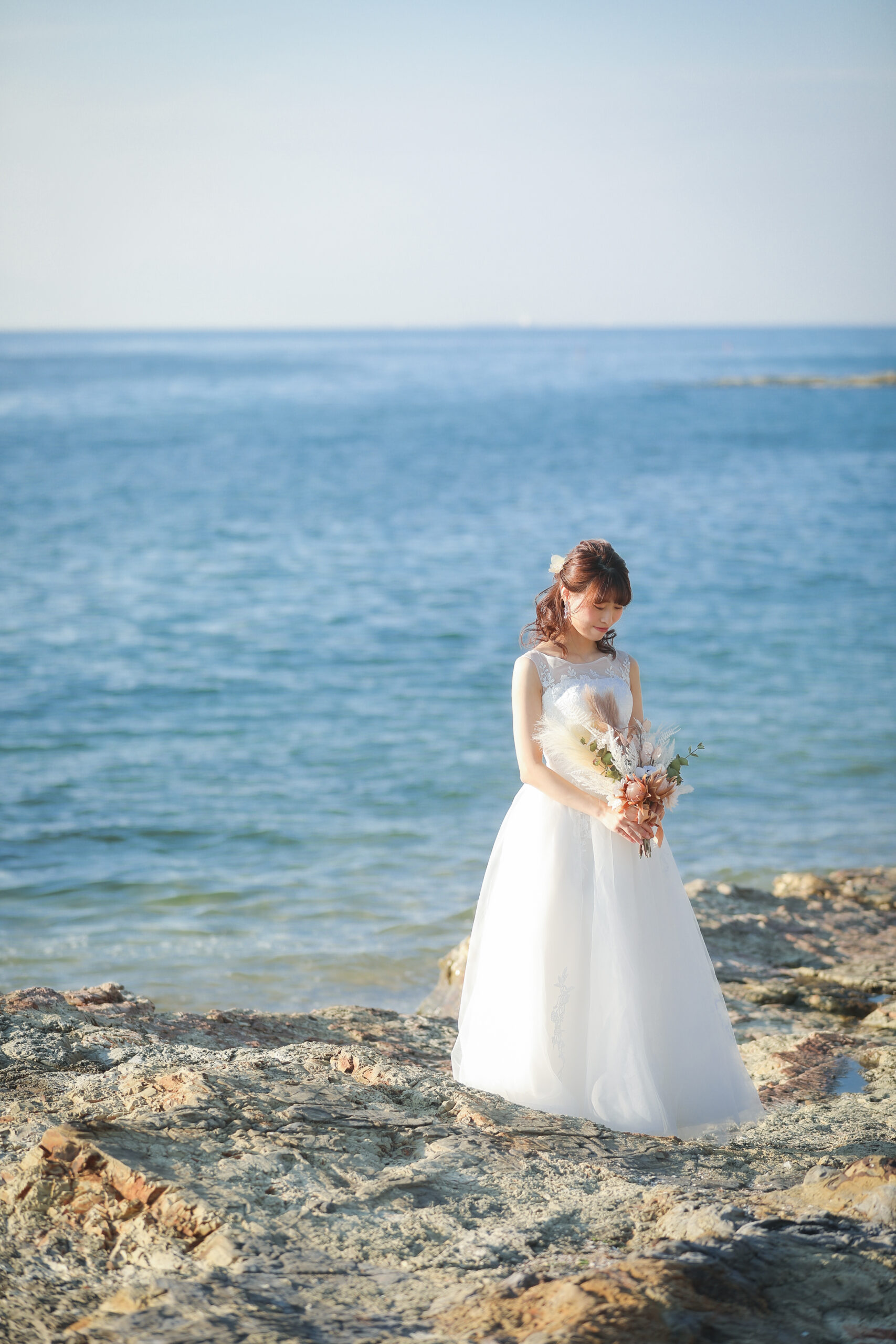野間灯台洋装ロケーション前撮りレポ《海でウェディングフォト》