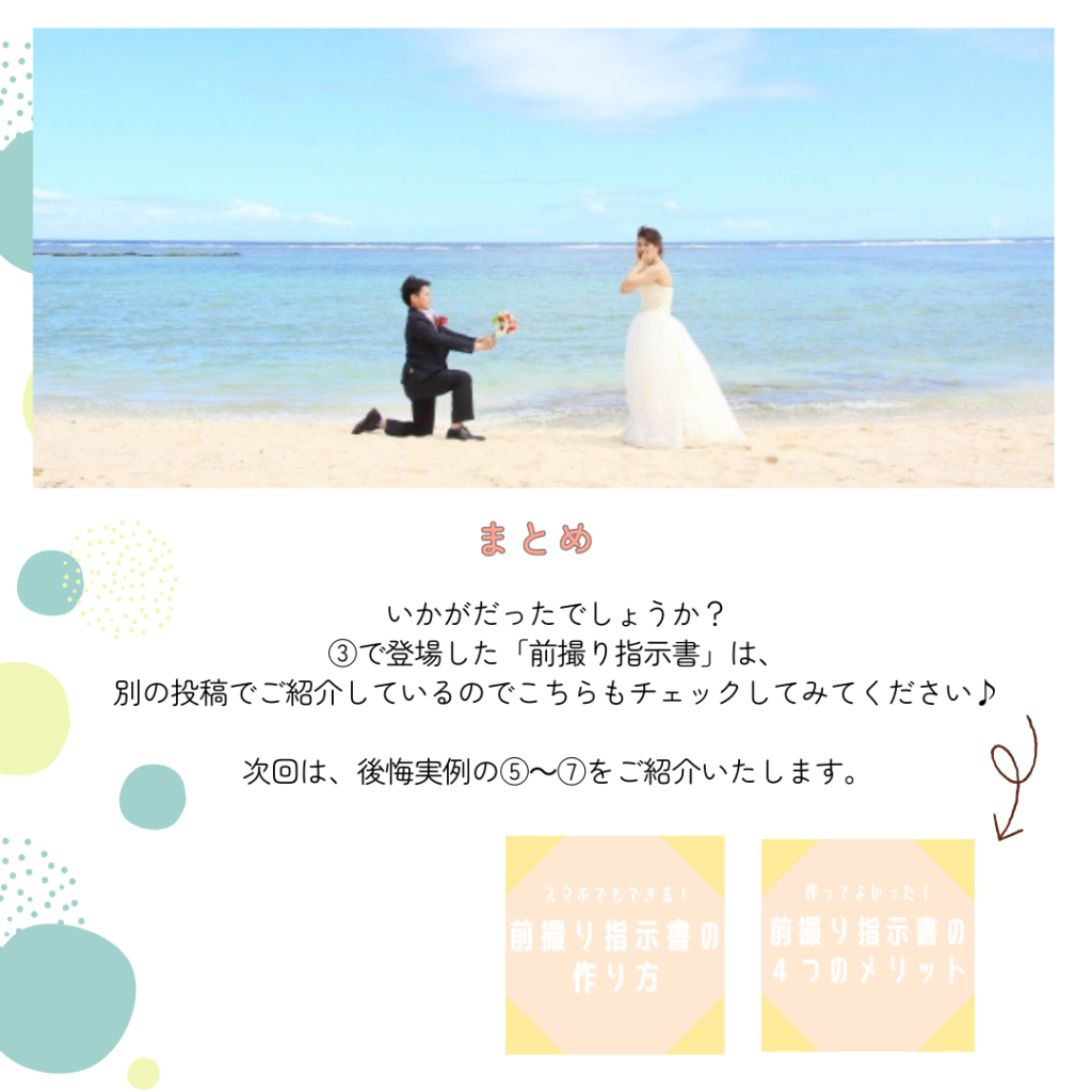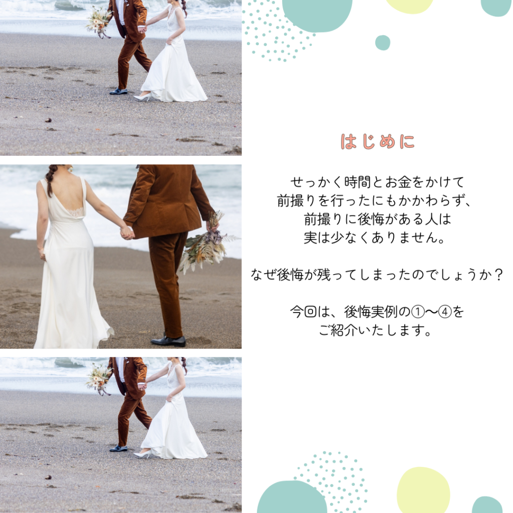 これから前撮りを検討している方にとっては、卒花嫁様がどんなことを前撮りで後悔しているのか気になりますよね。
