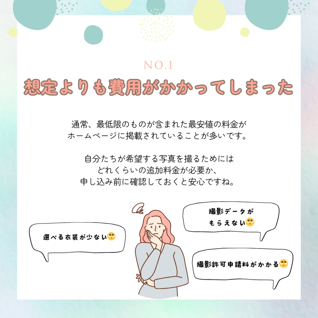 今回は卒花さんからお伺いした前撮りで後悔した具体例と、後悔しないためのポイントをお伝えします♪