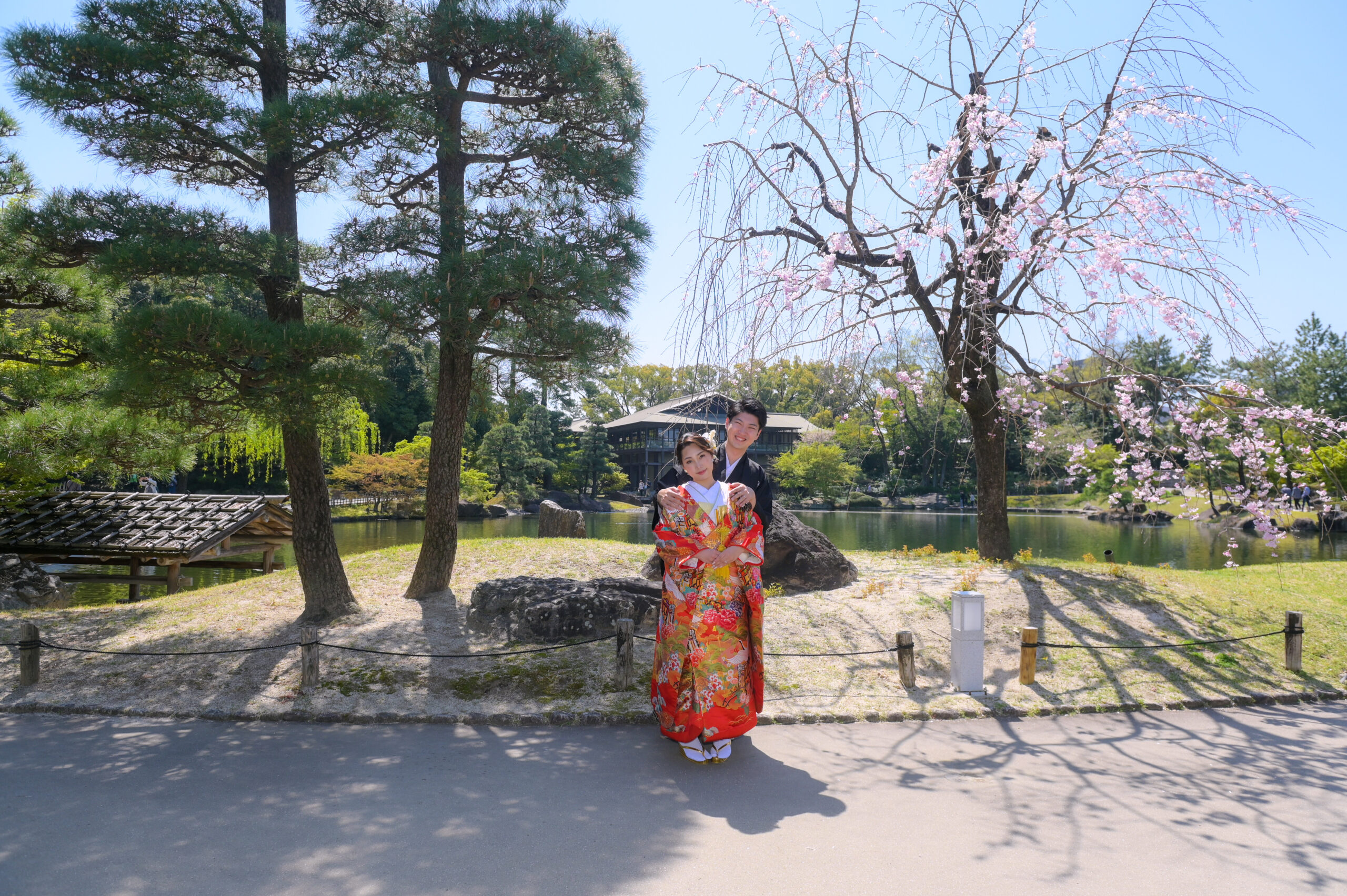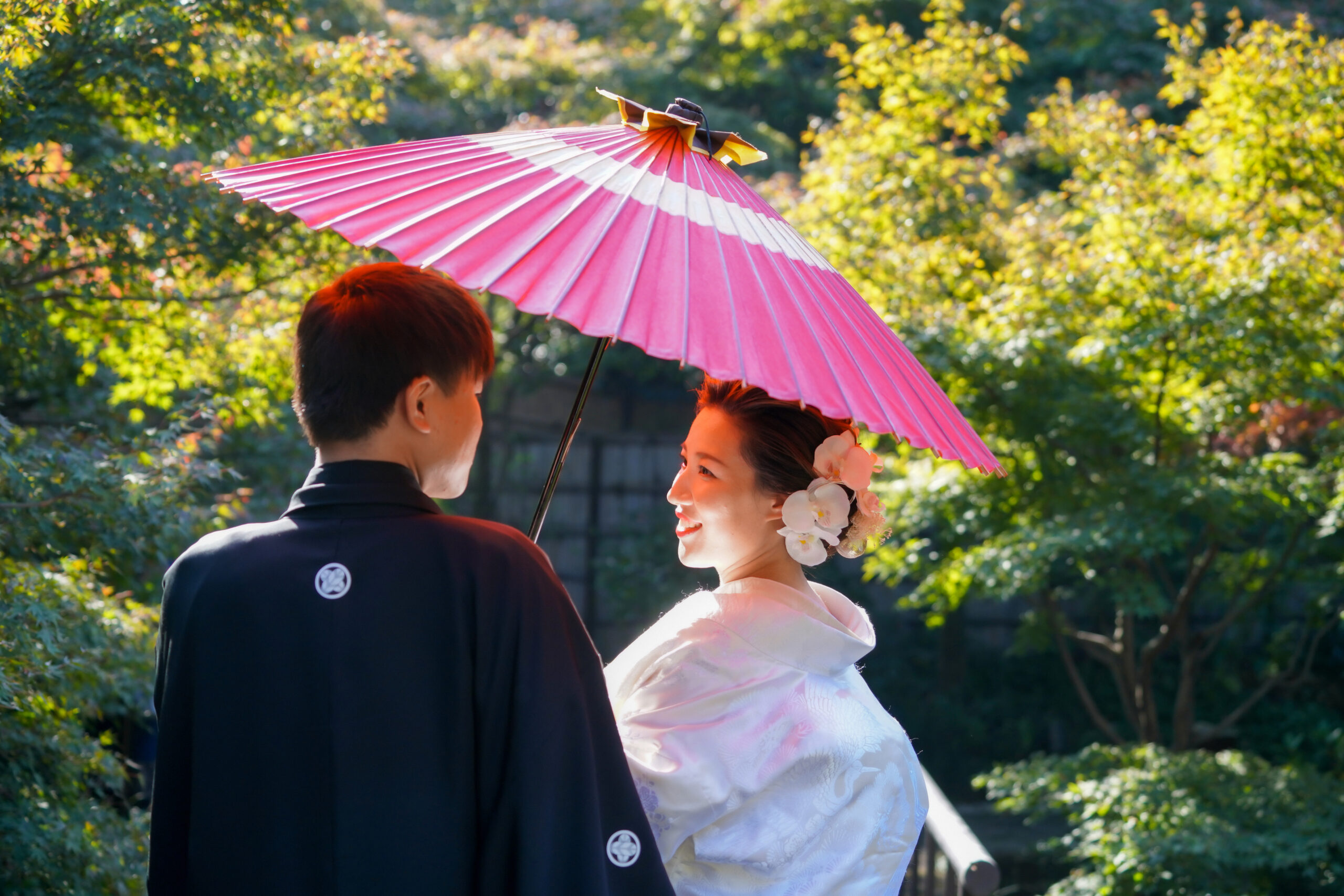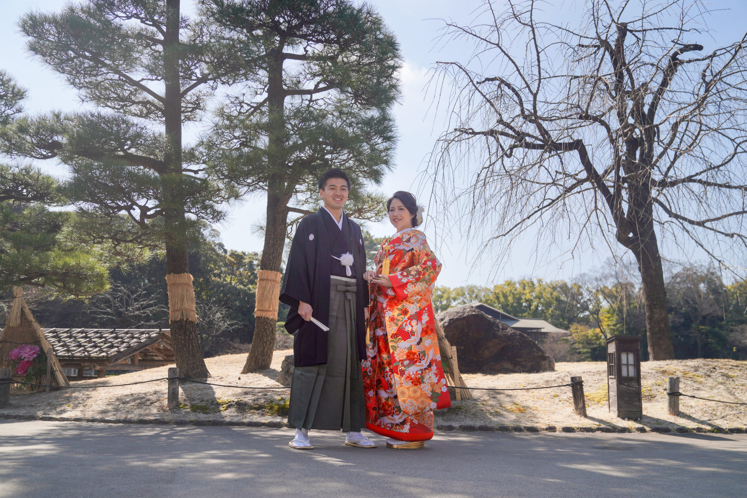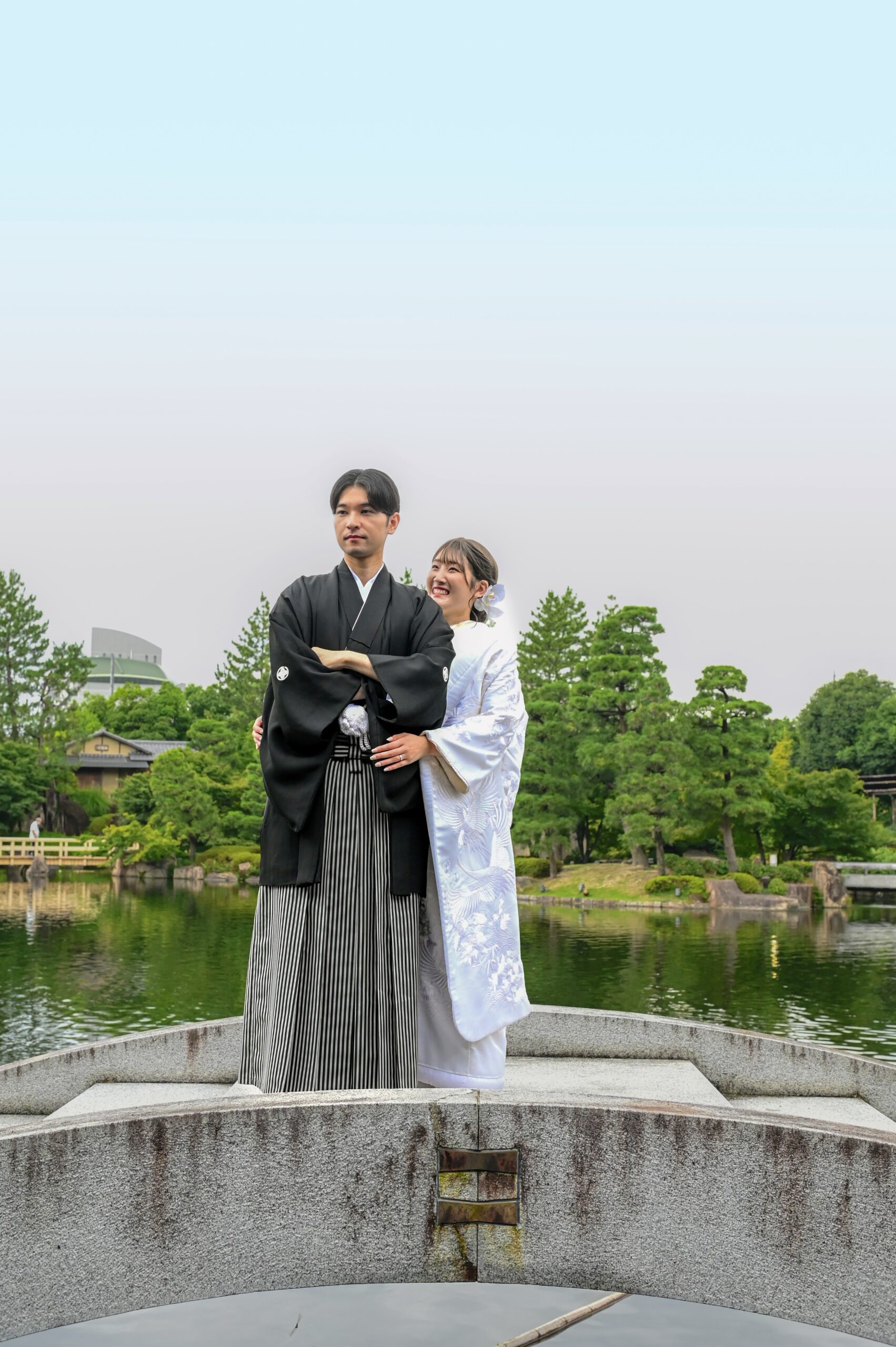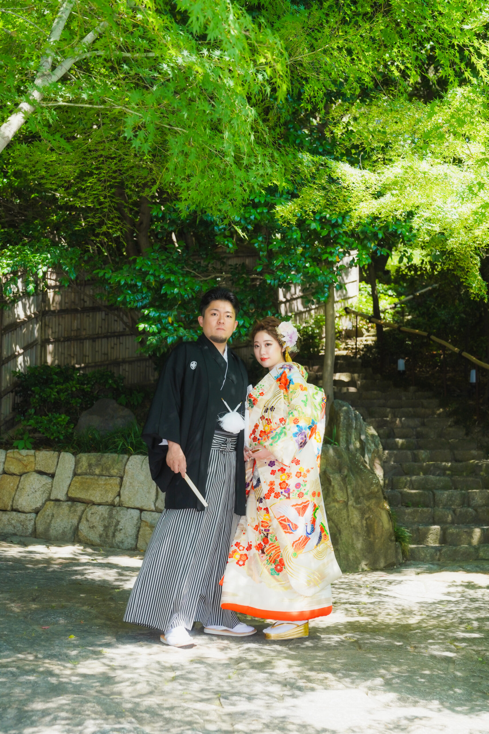 徳川園で和装ウェディングフォト 風景の中に溶け込む新郎新婦
