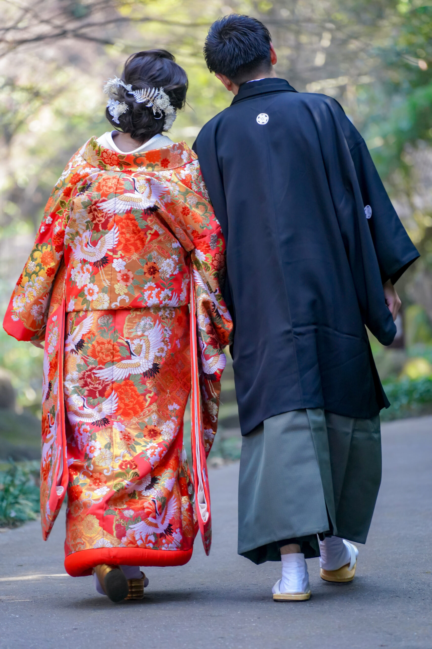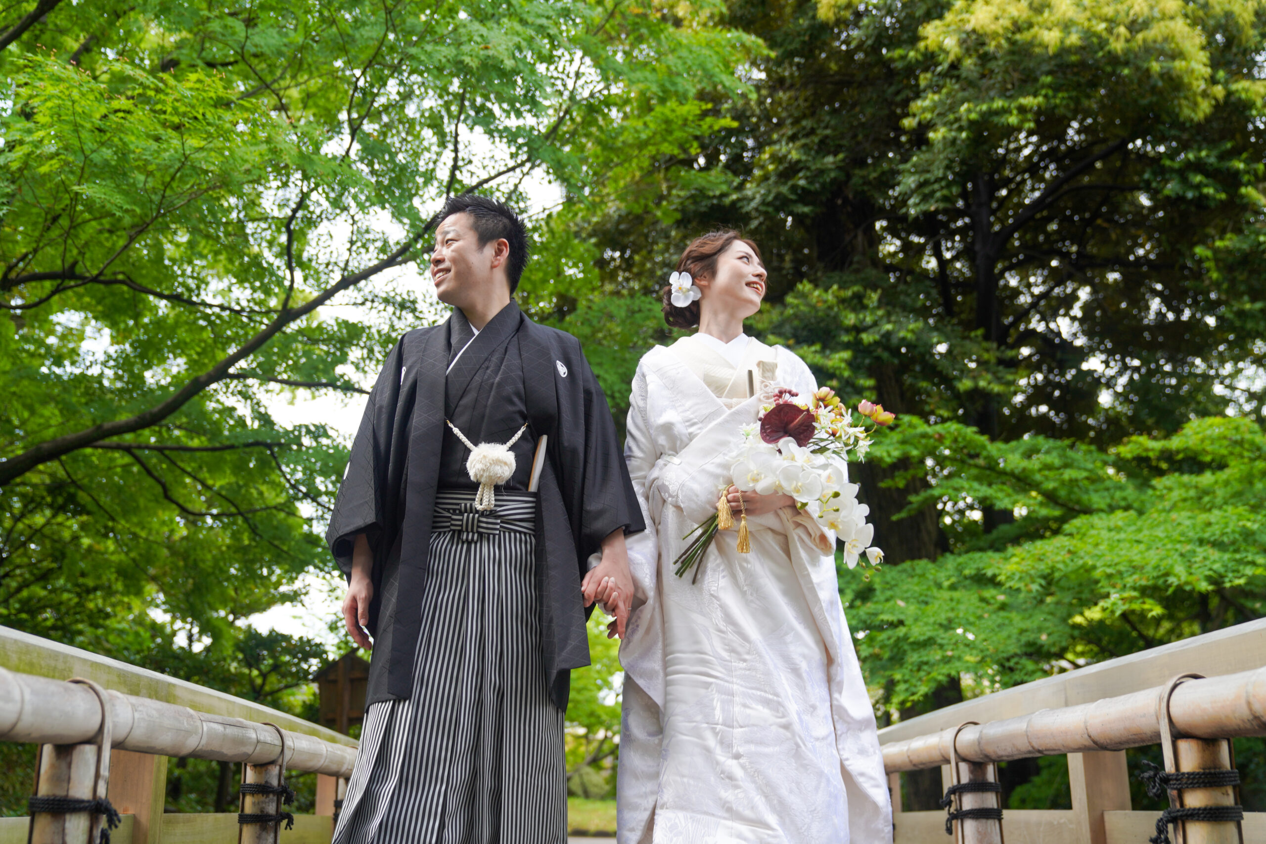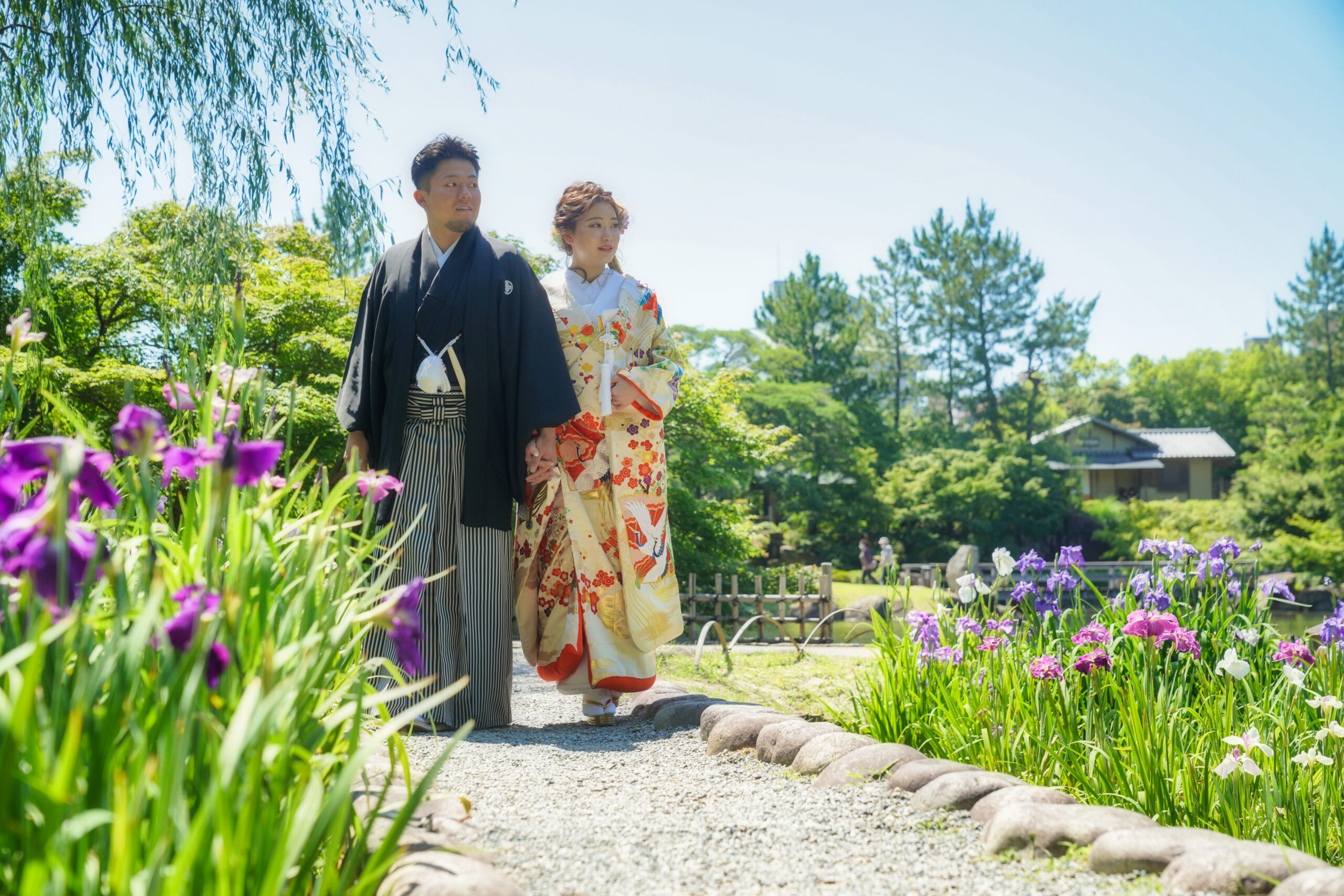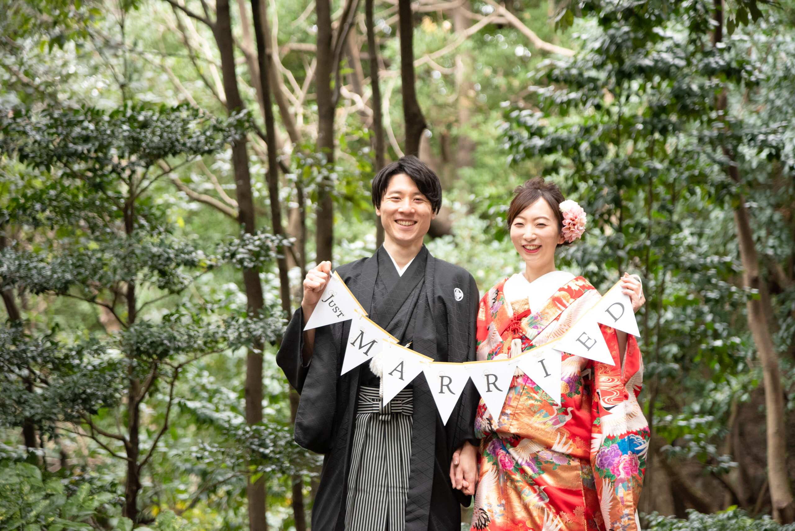 徳川園で和装ウェディングフォト 風景の中に溶け込む新郎新婦