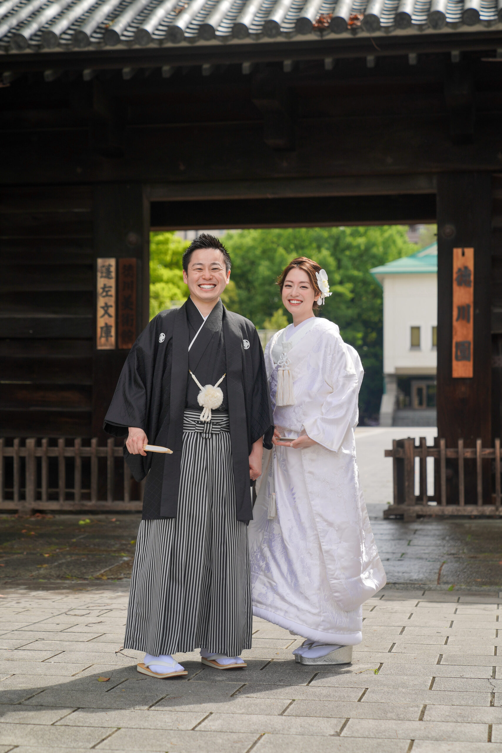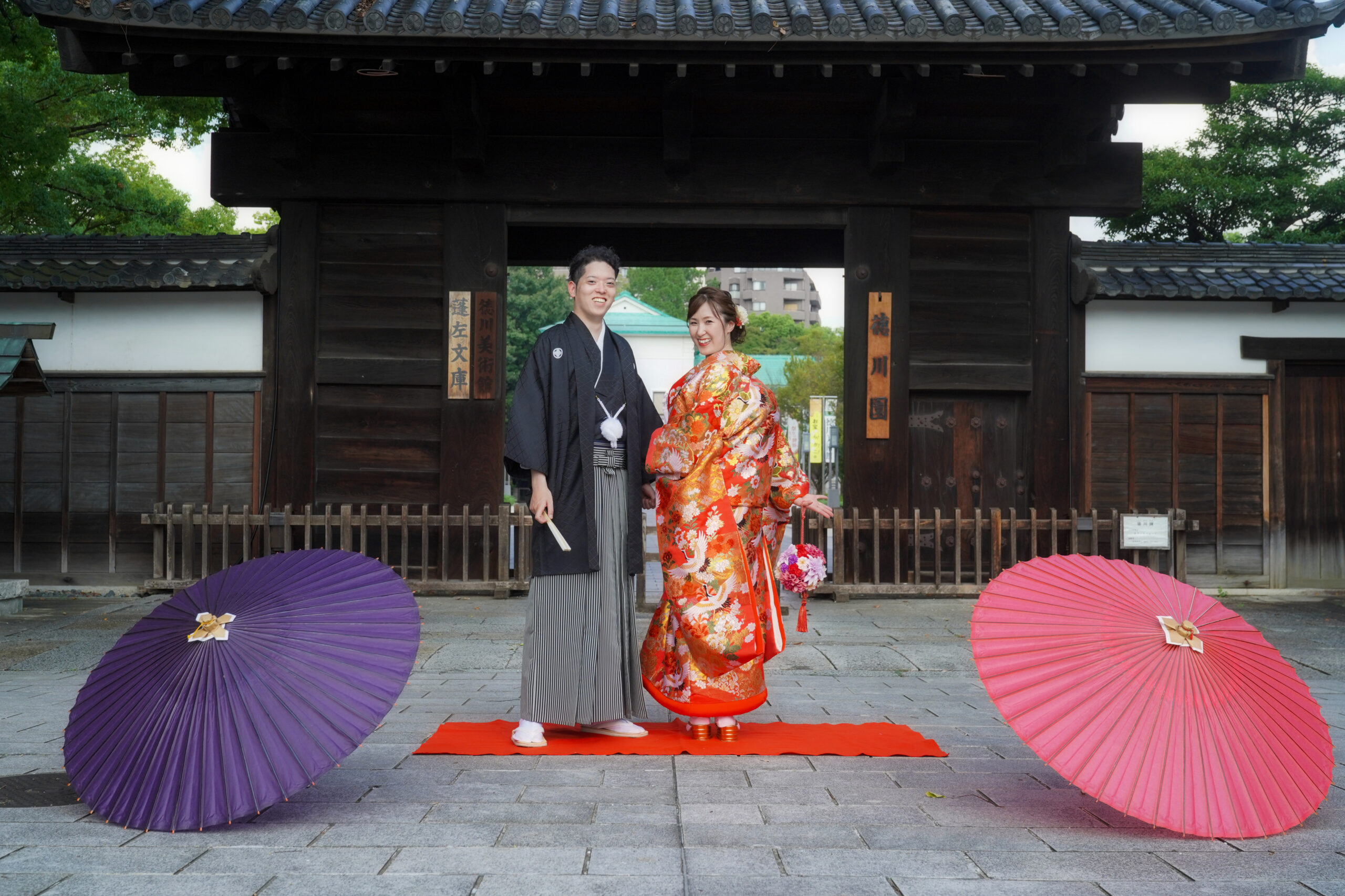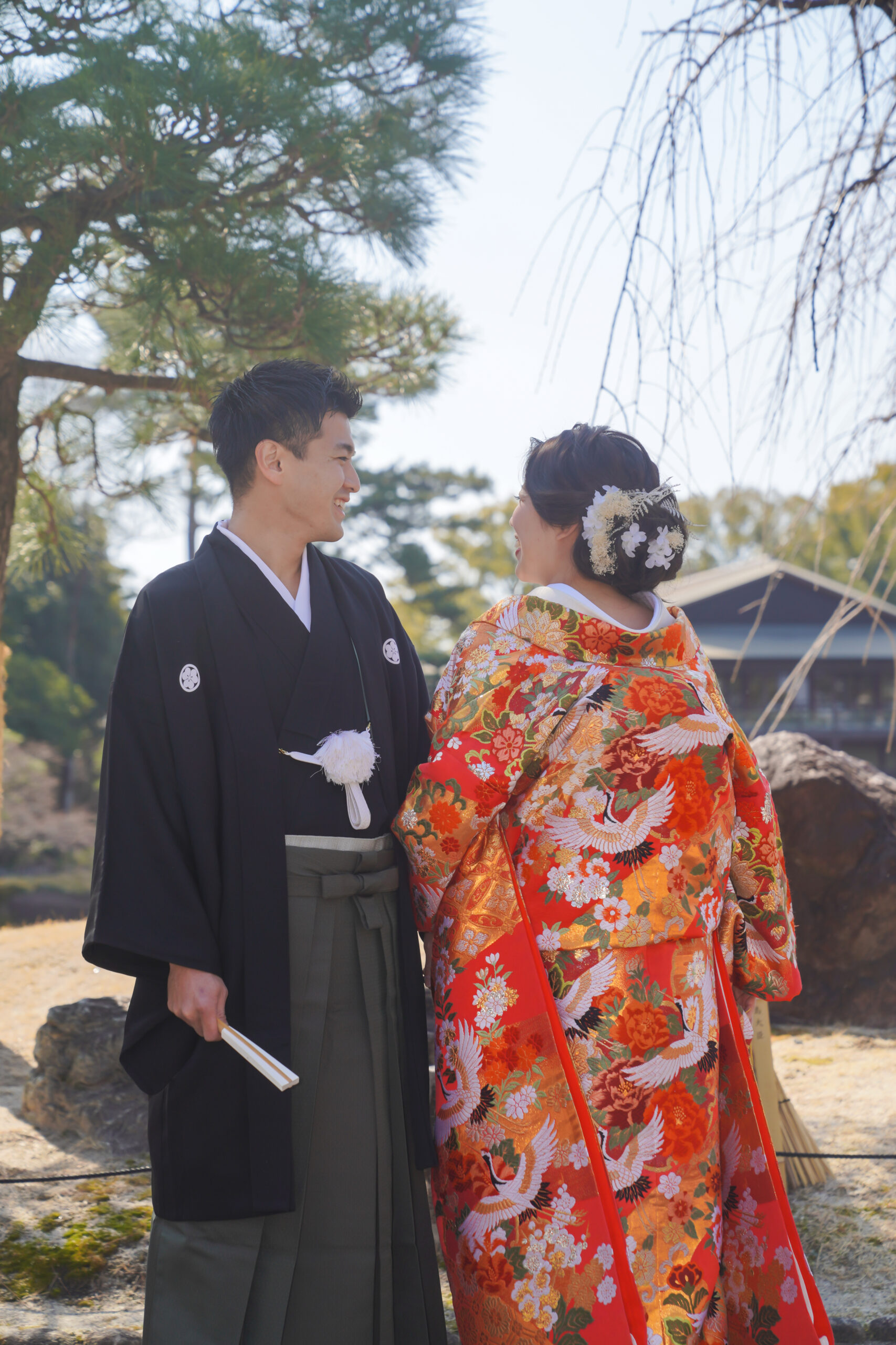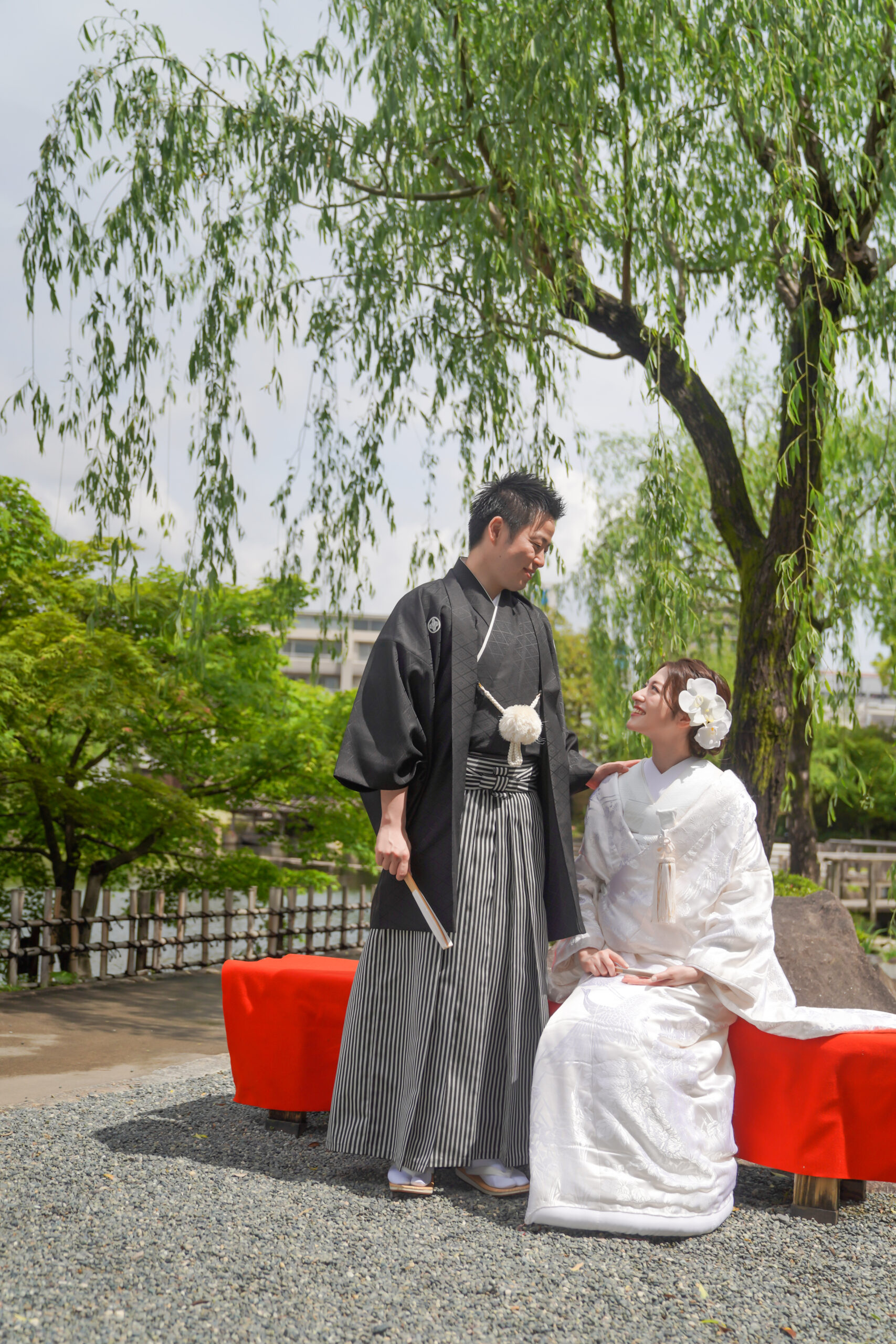 徳川園で和装ウェディングフォト 凛々しい新郎と愛らしい花嫁