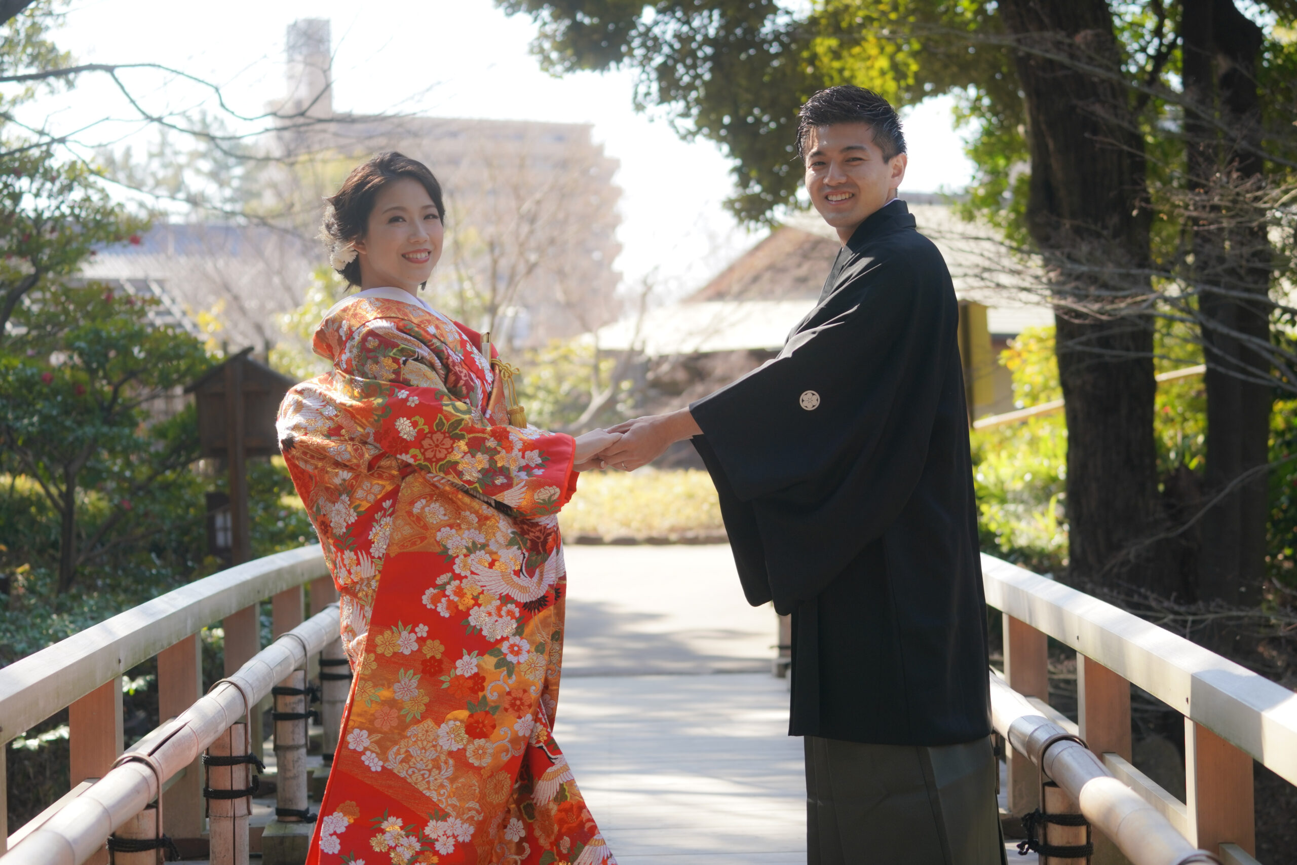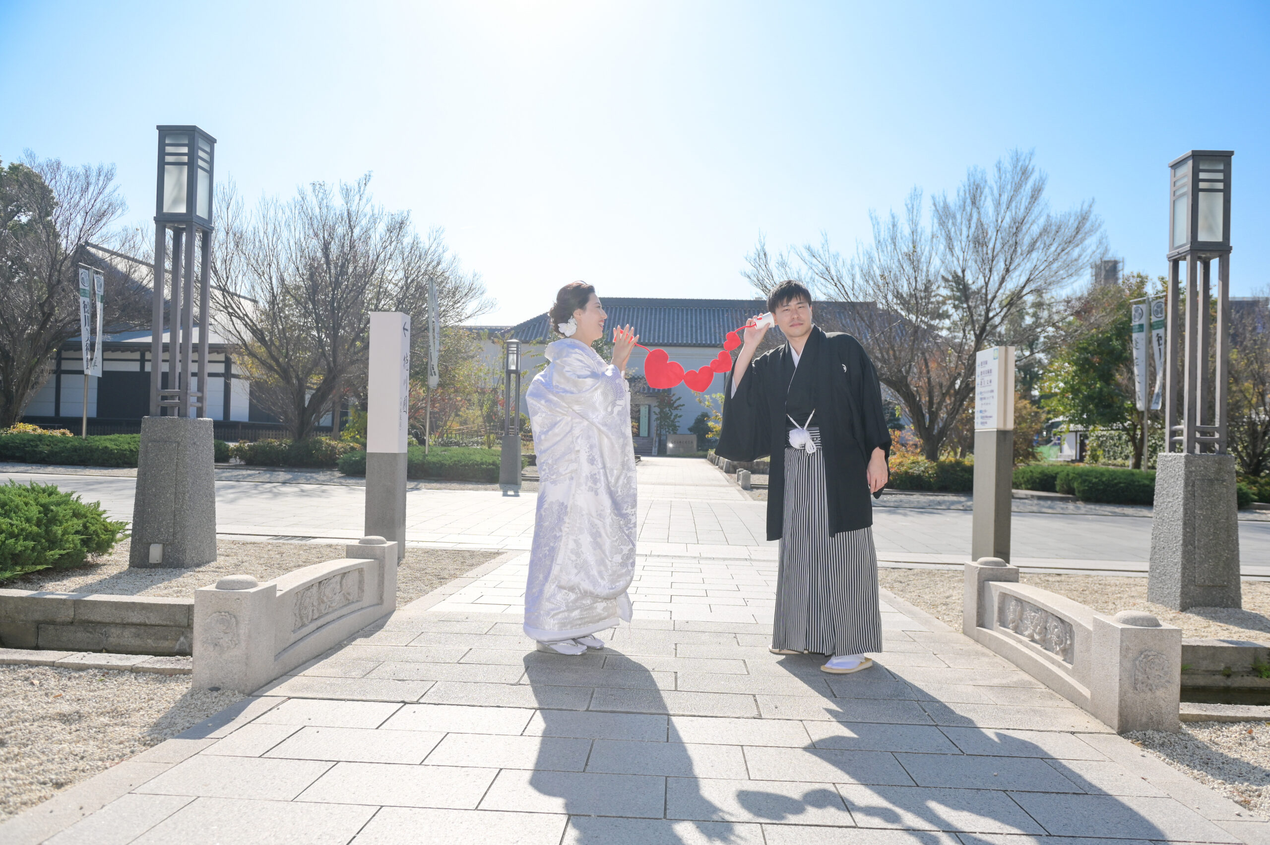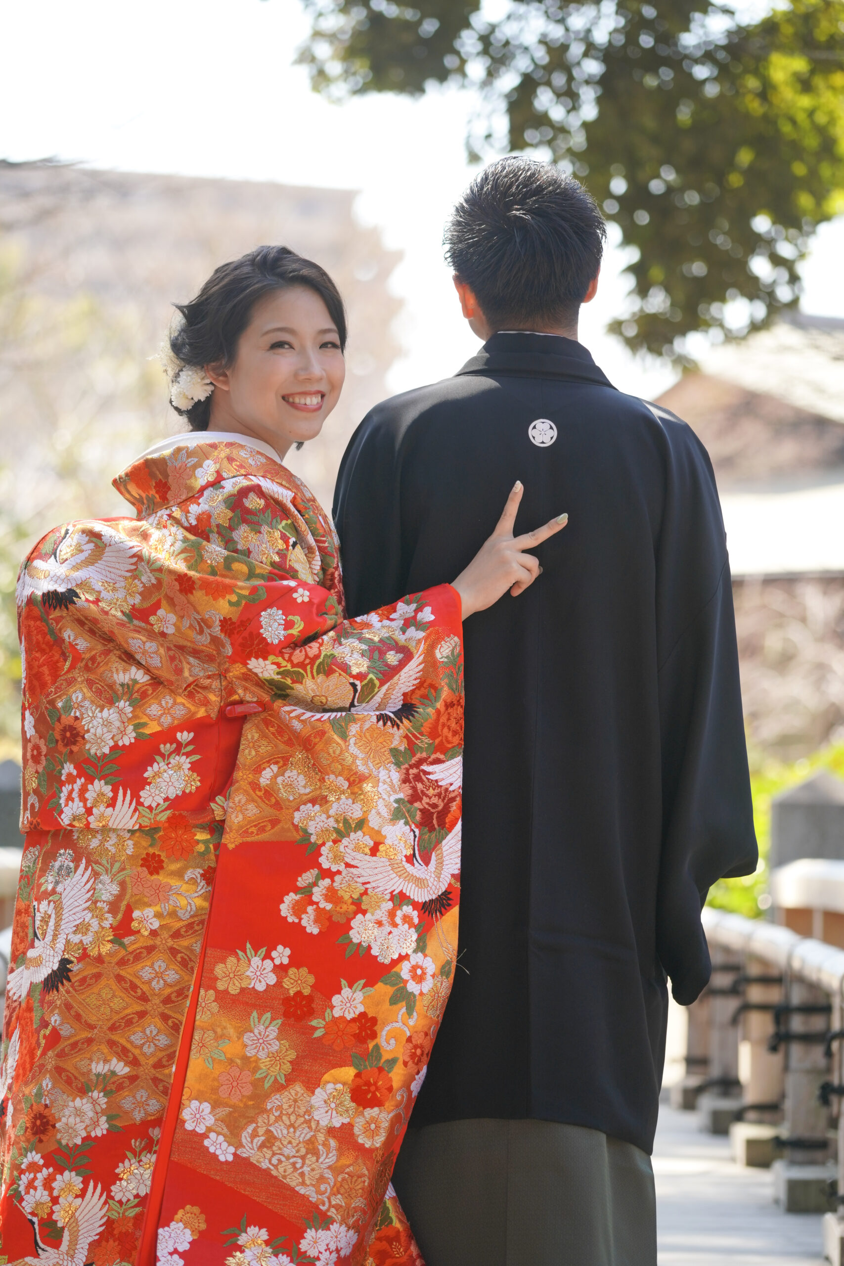 徳川園で和装ウェディングフォト 凛々しい新郎と愛らしい花嫁