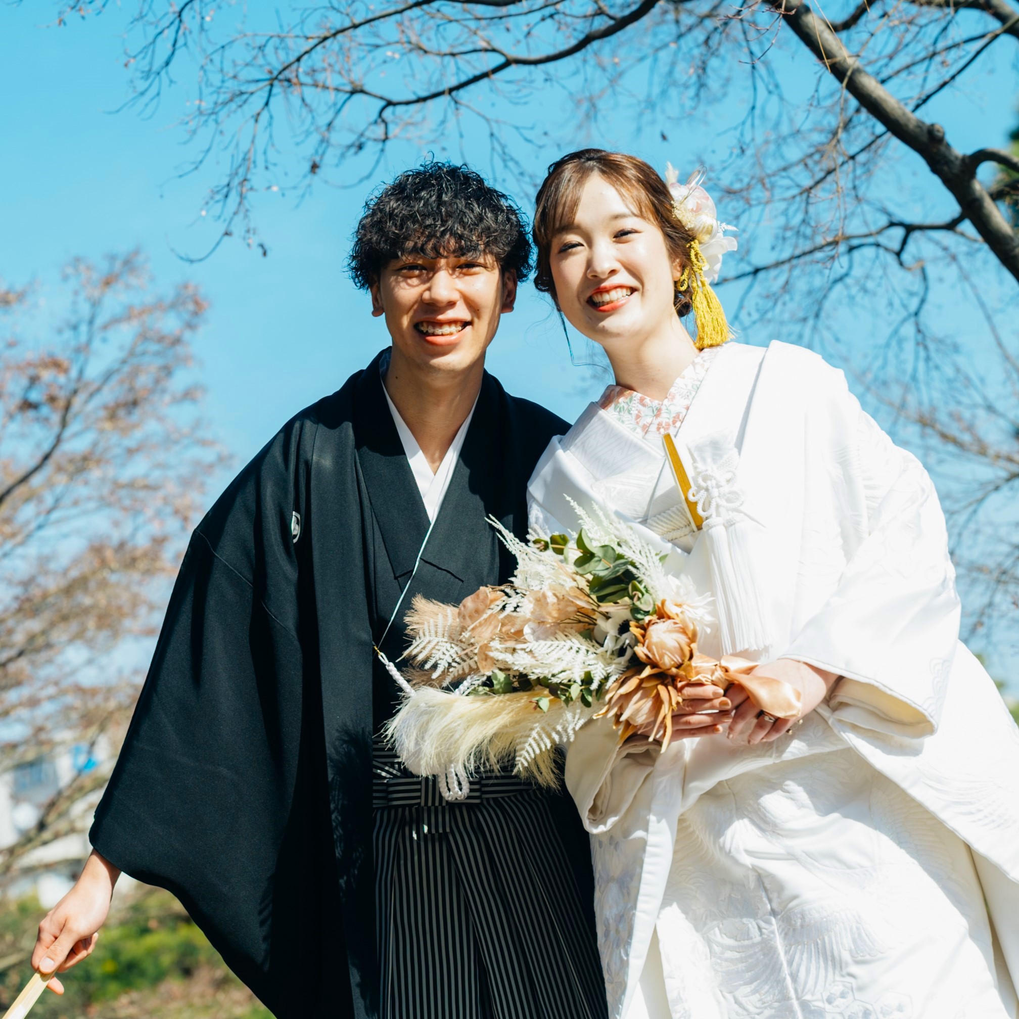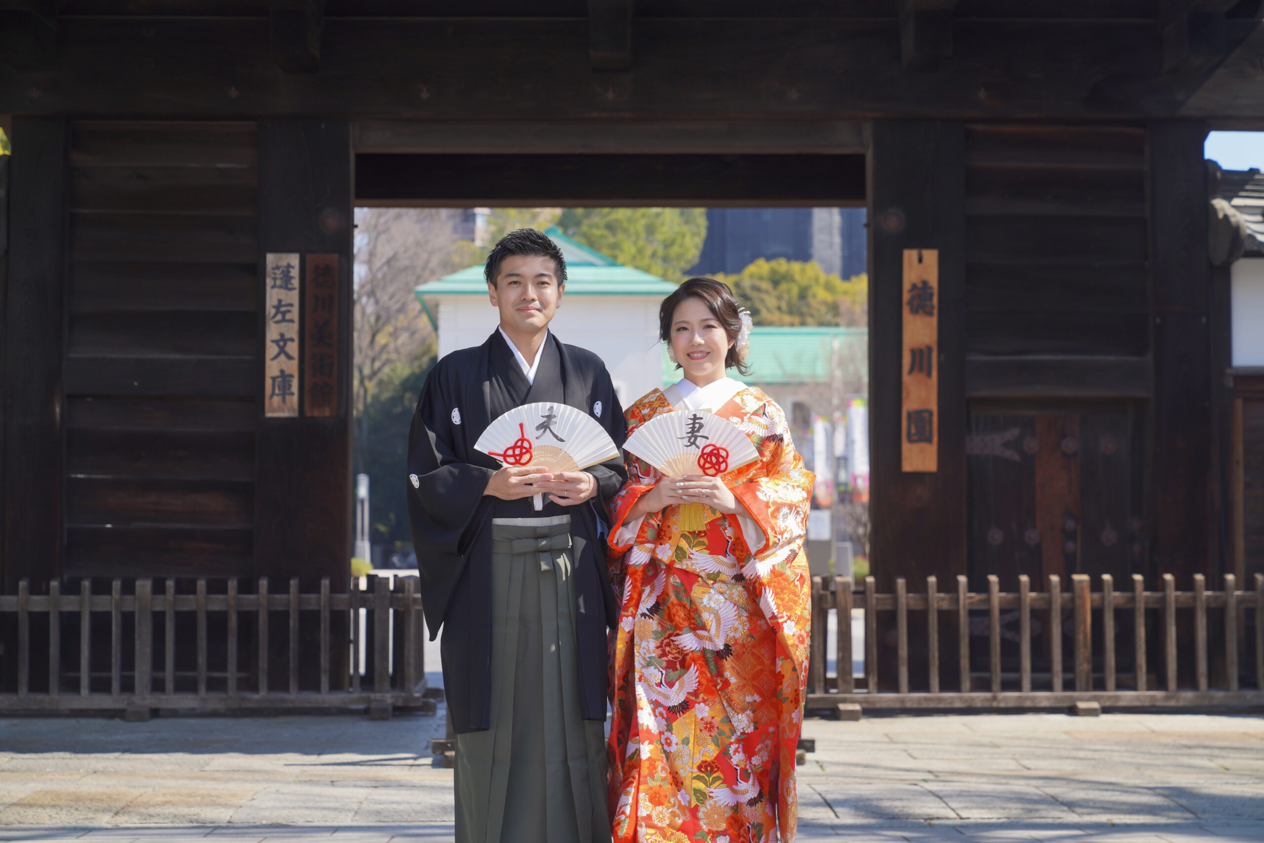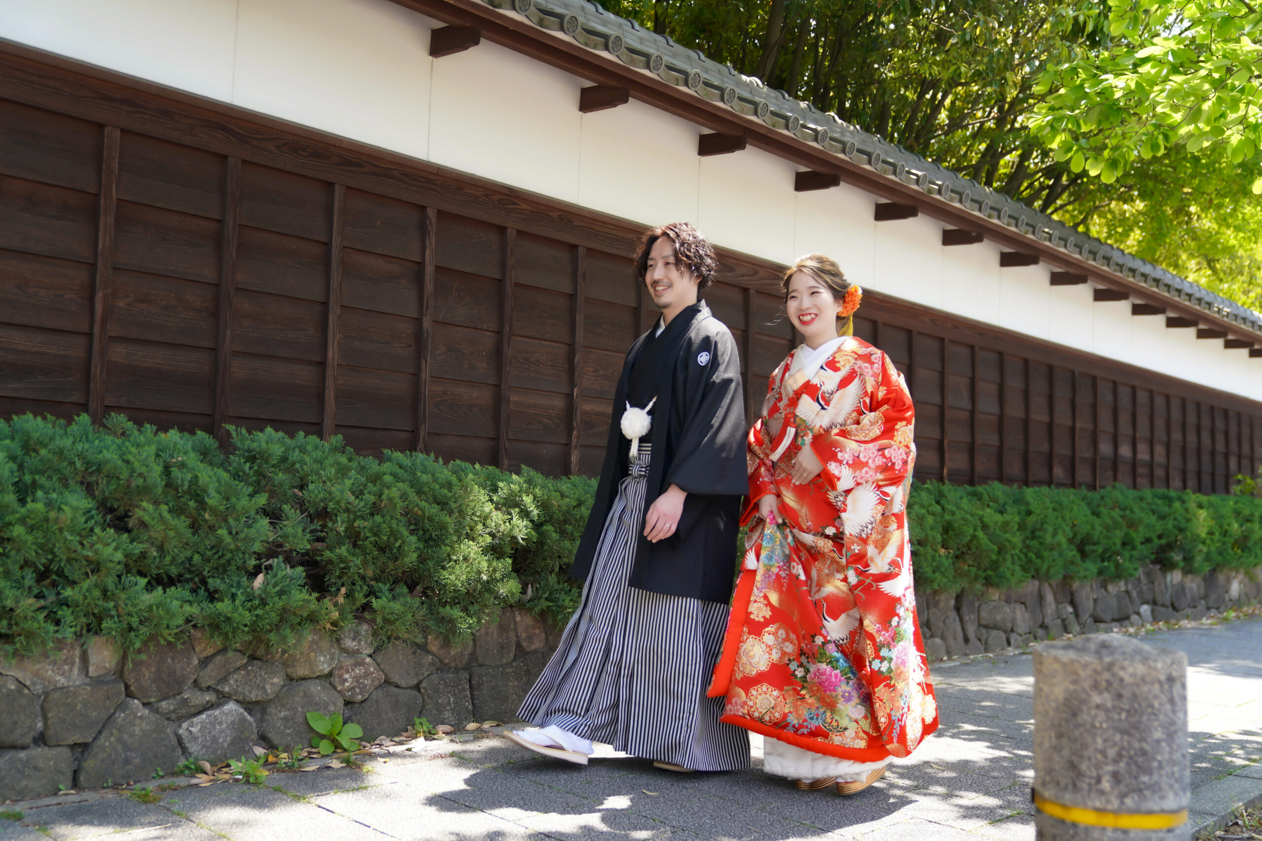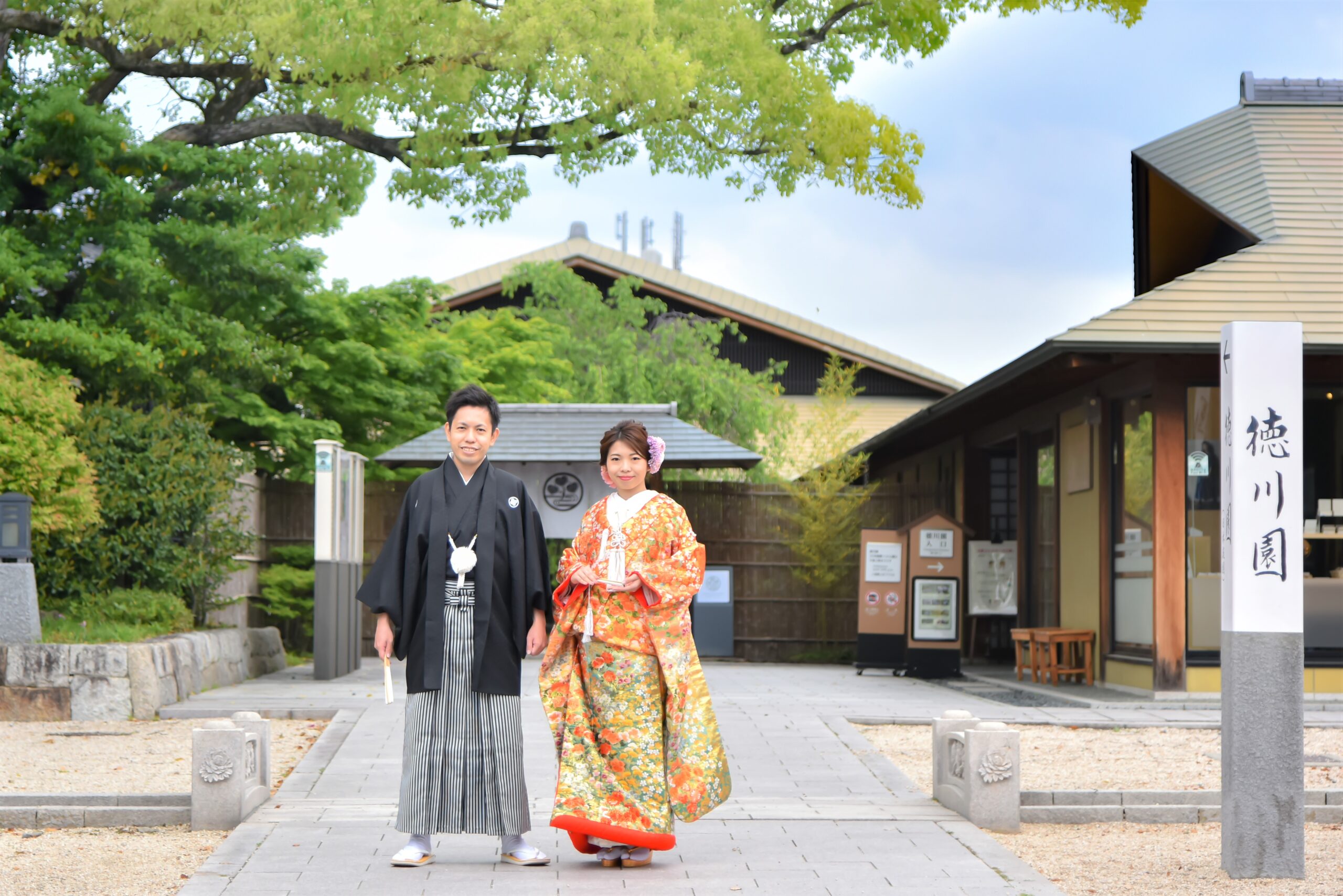 徳川園で和装ウェディングフォト 凛々しい新郎と愛らしい花嫁